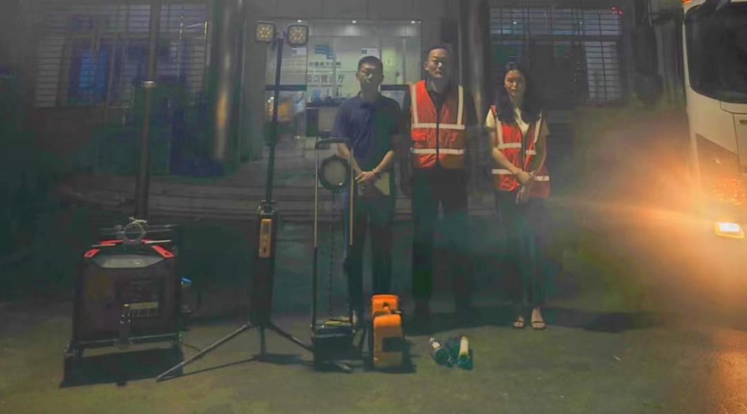 6月17日上午10:00,廣東辦事處成立救援小組,調配60余臺各類應急照明設備,從惠州基地出發(fā),前往梅州地區(qū)配合有關部門調試、分發(fā)。隨后在各現(xiàn)場進行跟班,直至次日凌晨2:00。